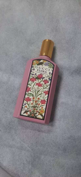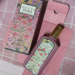Được bao bọc trong một chai mới, dài, thủy tinh màu hồng sơn mài và nắp vàng sáng bóng. Một bổ sung đáng chú ý là hoa văn Flora đặc biệt, được tái tưởng tượng với thiết kế lấy cảm hứng từ tầm nhìn của Alessandro Michele. Một phần cốt lõi của bản sắc Gucci, họa tiết là bức tranh vẽ những bông hoa đầy màu sắc của nghệ sĩ Vittorio Accornero, được tạo ra cho Gucci vào năm 1966.